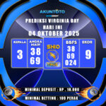 Prediksi Togel Jitu Pasaran VIRGINIA DAY 08 OKTOBER 2025 Sudah dipastikan angka yang kami berikan merupakan angka yang sudah dirumuskan dengan baik untuk para bettor pencari angka. Prediksi yang kami berikan sudah pasti sangat jitu, Sudah terbukti dari semua prediksi kami 70%-nya pasti JP. Banyak perhitungan dari berbagai angka yang kami berikan. Hasil pengeluaran setiap […]